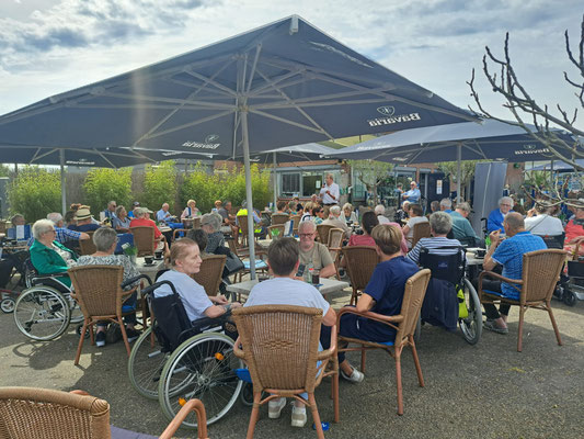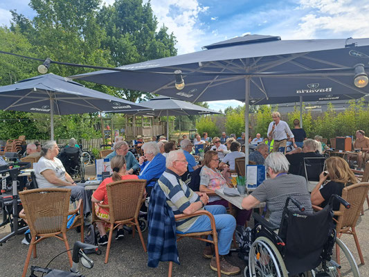 Zoals al weer enkele jaren de traditie is, gingen we met een groot aantal bewoners en vrijwilligers op stap naar de Sonse Haven. Onder het genot van een kopje koffie of thee met wat lekkers en uiteraard daarna een lekker drankje genoten de bewoners van het muzikale optreden van Aris Weel. Mede dankzij het lekkere weer, de inzet van de vrijwilligers en een gulle donatie was dit jaarlijkse uitstapje weer een groot succes.